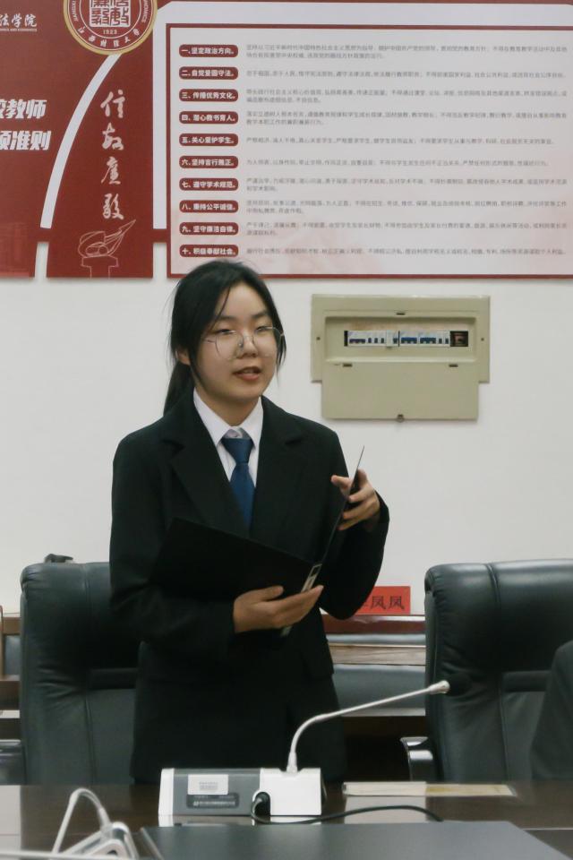 国际经济法215班潘虹茹作为获奖者代表发言,她感谢学校、老师和校友,承诺铭记初心,谦逊努力,未来学以致用,传递爱心。