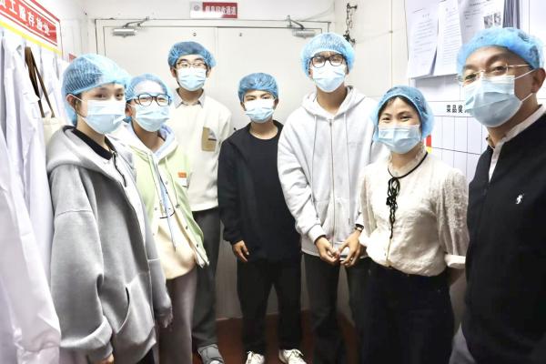 同学们认真发现问题、记录问题,与工作人员积极交流,工作人员表示每日所需食材都是当天购当天销,在监督管理方面,做到“日管控、周排查,月调度”。