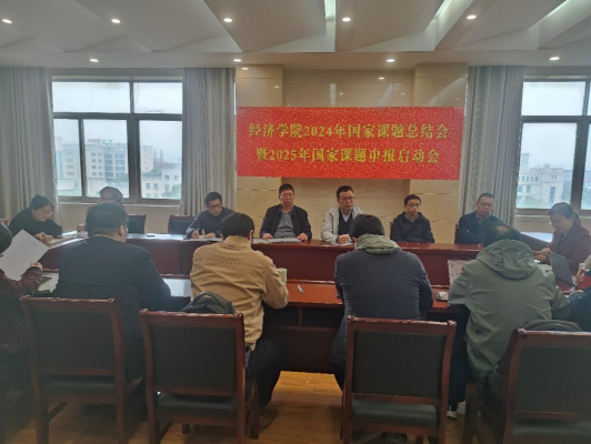 11月20日下午,经济学院召开2024年度国家课题申报总结会暨2025年度国家课题申报启动会。院长张利国、周应恒教授以及2024年国家课题立项教师、2025年经济学院有资格申报国家课题的教师近40人参加了会议,会议由副院长余炳文主持。