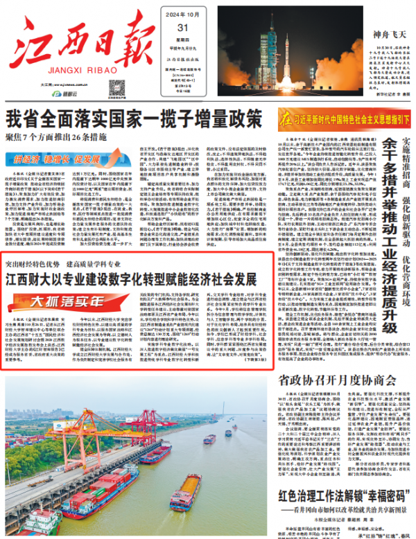 近日,《江西日报》头版以“突出财经特色优势建高质量学科专业——江西财大以专业建设数字化转型赋能经济社会发展”为题,报道我校突出学校财经特色优势,以专业建设数字化转型赋能经济社会发展。
