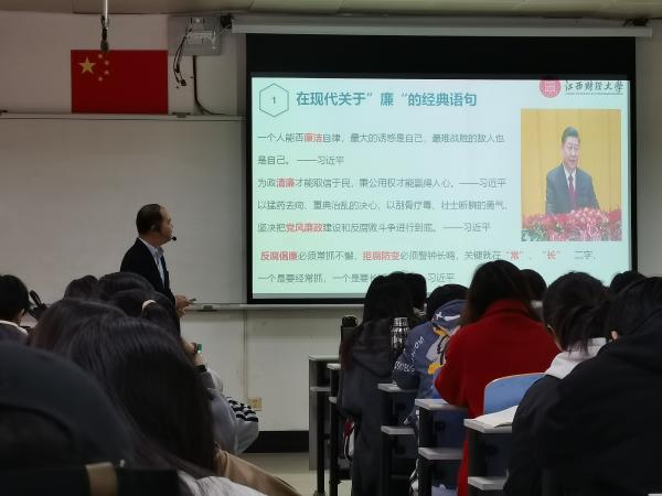 李春根从我校校训精神的“廉”出发,深入挖掘了古代与现代的“廉”文化思想,阐释了现阶段在江财学子中开展财经纪律教育的重大意义,即财经纪律教育能够奠定当代大学生的专业伦理基石、预防职业风险,提升职业竞争力、强化法治观念、促进教育教学改革与学科建设以及响应政策导向和社会期待。在激发学生理论认同的基础上,李春根又从财经法律法规教育、财经纪律制度培训、财经职业道德教育、财经风险管理与内部控制等维度深刻诠释了财经纪律教育的内容,并就财经纪律教育的相关法律法规以及相关案例作出了深入浅出的解读。