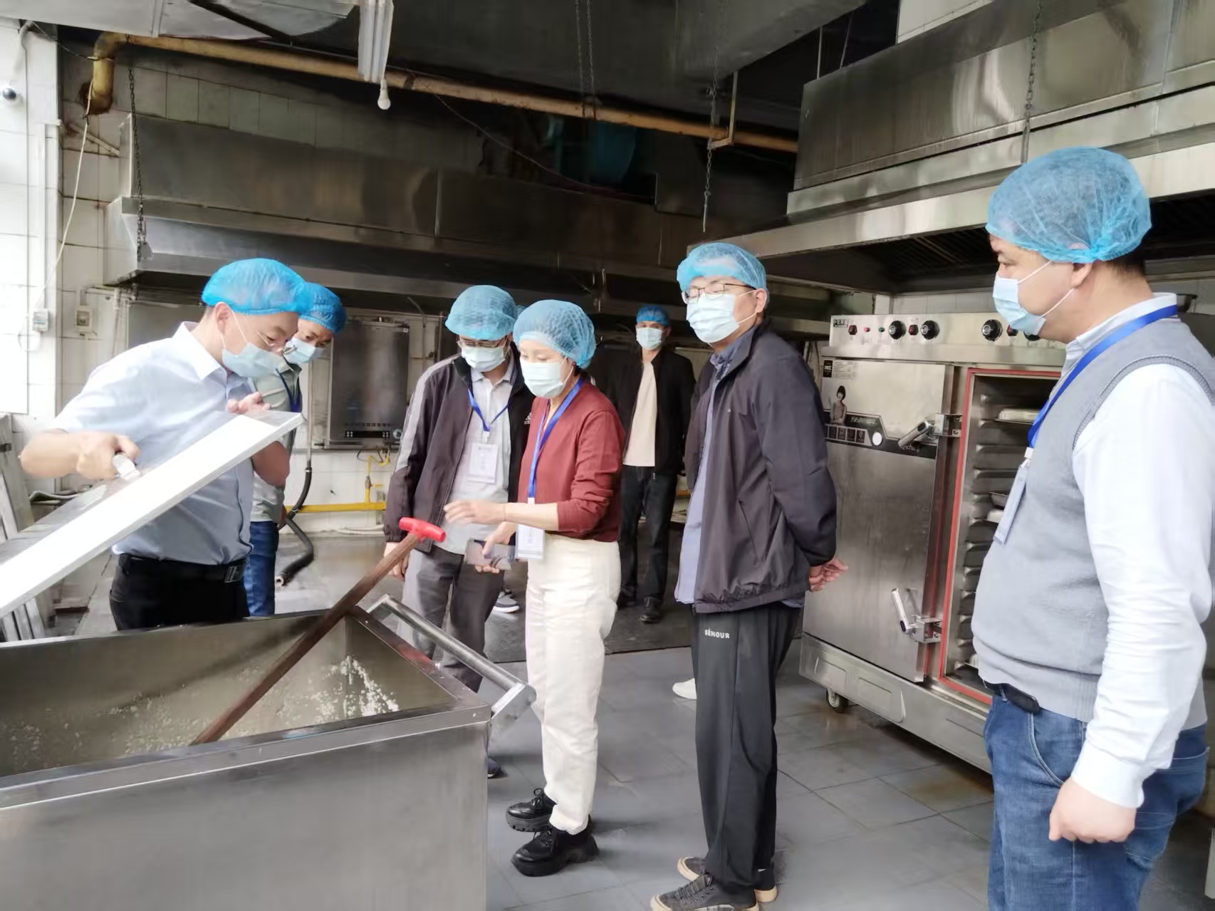 为进一步加强校园食品安全监管,提升食堂服务质量,切实保障校园食品安全,4月23日学校工会组织工会福利委员会代表以及来自审计处、财务处、学院教职工代表,深入蛟桥园鼎食轩食堂后厨,开展“教工进后厨”监督检查。工作组通过实地检查、台账查阅等方式,全方位对食堂后厨开展监督检查。