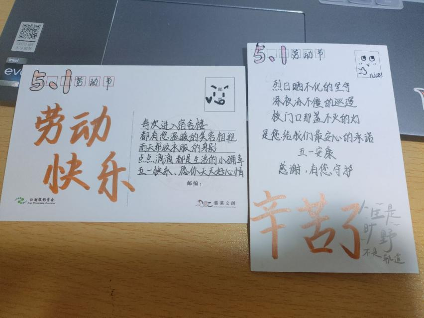 本次“五一送卡片”活动圆满达成预期目标,通过简单而温暖的方式,让校园劳动者感受到了尊重与关爱,也让同学们在实践中深化了对劳动精神的理解。未来,会计学院青年志愿者协会将继续围绕校园文化建设与情感教育,开展更多形式丰富的主题活动,进一步弘扬正能量,为营造温馨和谐的校园环境贡献力量。