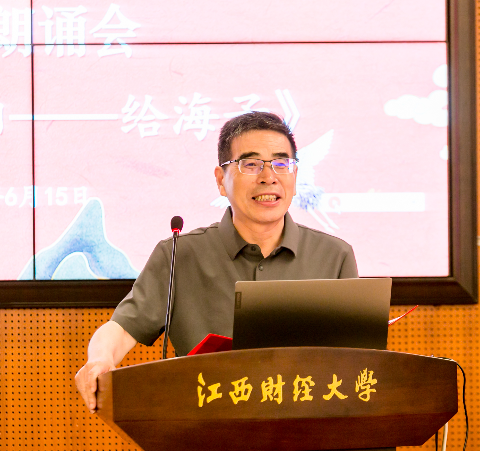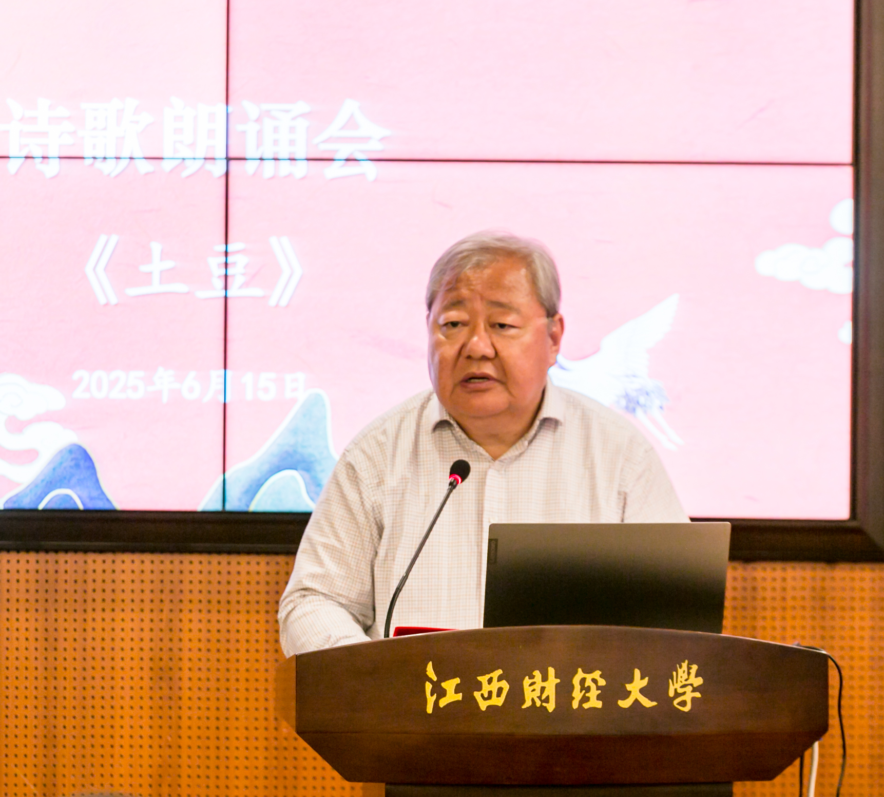 讲座结束后,举行了诗歌朗诵会。吉狄马加、李国富、杨四平、李哲和江财校友会沁缘诗社成员章新挺校友、严武老师以及两位学生代表分别朗诵诗词佳作,现场展示诗词的魅力。