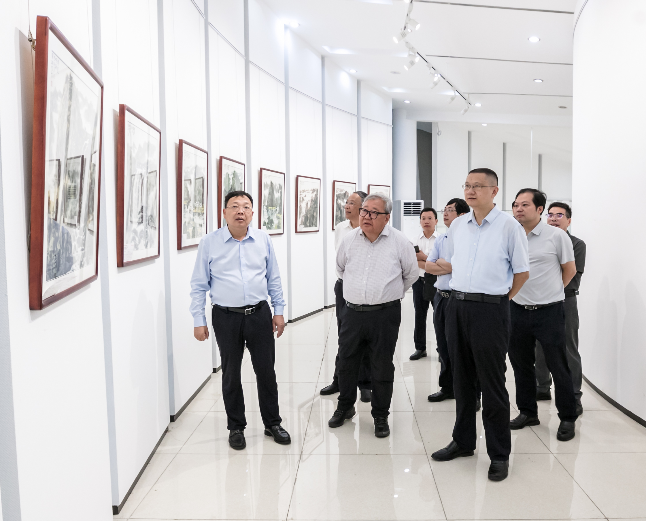 刘耀彬与吉狄马加一行共同参观了学校博雅艺术中心诗书画展,并为吉狄马加颁发客座教授聘书。
