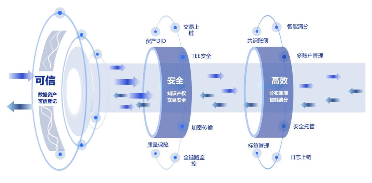 数据要素市场建设与流通交易:为数据交易所、交易平台提供核心技术支撑,实现数据的确权登记、合规审查、标准化处理、隐私计算保护下的安全流通、价值评估与智能撮合交易,推动构建“三权分置”的新型数据产权制度和健康有序的数据要素市场生态。