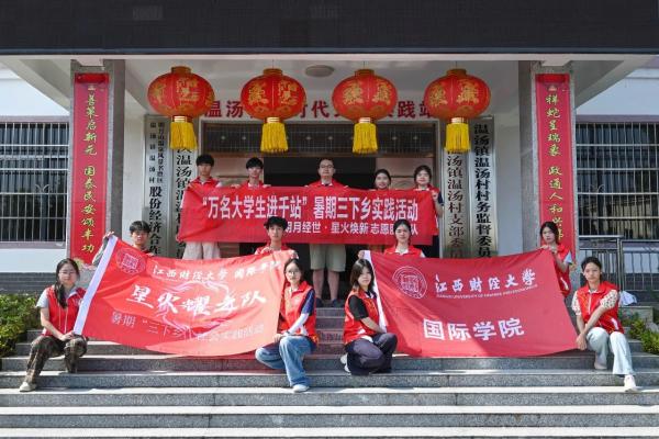 炎炎夏日,理想与实践交汇在田野间。为深入贯彻“万名大学生进千站”社会实践精神,江西财经大学国际学院“星火耀之队”于7月14日奔赴宜春市温汤镇,围绕防溺水宣传、基层治理、移风易俗与文旅发展等主题,开展为期三天的社会调研与实地探访。十二名队员肩负青春使命,用脚步丈量乡土肌理,用眼睛记录民生细节,用语言传递乡村变迁。三天旅程虽短,却在一问一答、一走一看中,构建起青年与土地的情感连接,也让我们切身体会到“知”与“行”的真实重量。