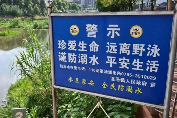 社会实践的第一站,队员们沿着温汤镇的栈道逆流而上,开启了一场与河湖安全相关的实地巡查。在村干部的带领下,我们沿河踏查,近距离观察防溺水设施、标语设置、巡查机制。河水平静,但安全警示处处可见:新设的围栏、清晰的水深标识、动态更新的警示立牌,以及多点布控的巡查机制,共同构建起一道有形与无形交织的生命防线。