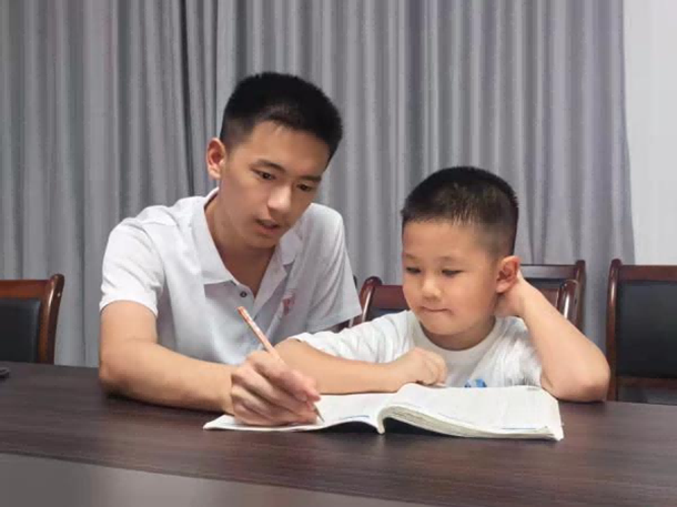 志愿者辅导小孩写作业场景