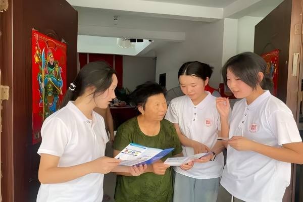 实践队员逐户开展防诈骗知识普及工作