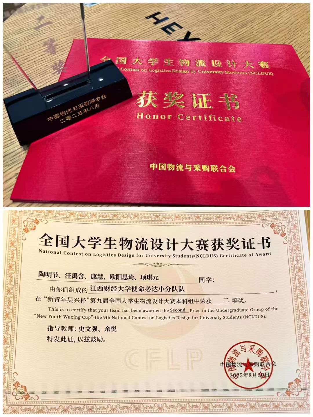 从初赛到决赛,历时四个多月,队伍在指导老师的悉心指导下,反复打磨方案,将理论知识转化为实战能力。队员们纷纷表示,通过大赛深化了对物流行业的认知,提升了团队协作与创新能力。同时,此次获奖,也是学校在创新人才培养方面取得的又一硕果,彰显了学校在物流与供应链管理领域的教学与实践成效。未来,工商管理学院将继续以赛促学、以赛促教,持续培养具有全球视野和创新精神的高素质物流人才。(图文/工商管理学院 编辑/张欣媛 审核/一审 姜莹 二审 赵旻 终审 成亚林)