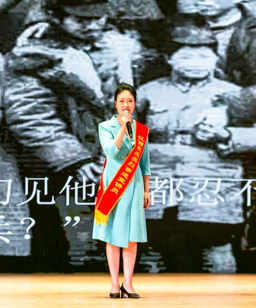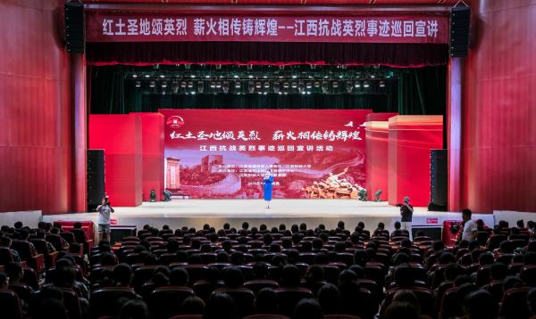 宣讲活动现场,6位江西英烈精神宣讲员采用情景讲述的方式,借助音频、视频、PPT等多种形式,以真挚的情感、铿锵的语言,为在场师生呈现了一个个感人至深、荡气回肠的英烈故事,生动地再现了一位位英烈的光辉形象,共同谱写了一曲红土圣地的英烈颂歌。