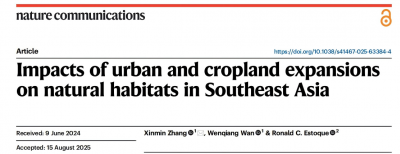 成果一:城市与耕地扩张对自然生境的影响。在《Nature Communications》发表《Impacts of urban and cropland expansions on natural habitatsin Southeast Asia》论文。东南亚作为生物多样性热点区域,此前很少有研究关注城市和耕地扩张对自然栖息地的直接和间接影响。研究显示,2000年到2020年,耕地扩张对东南亚自然栖息地的影响几乎是城市扩张的16倍。在2050年的SSP3下,耕地扩张对自然栖息地影响最为显著。在未来的SSPs下,与当前相比,预计耕地和城市扩张总影响之间的差距,以及城市扩张间接和直接影响之间的差距将会缩小。