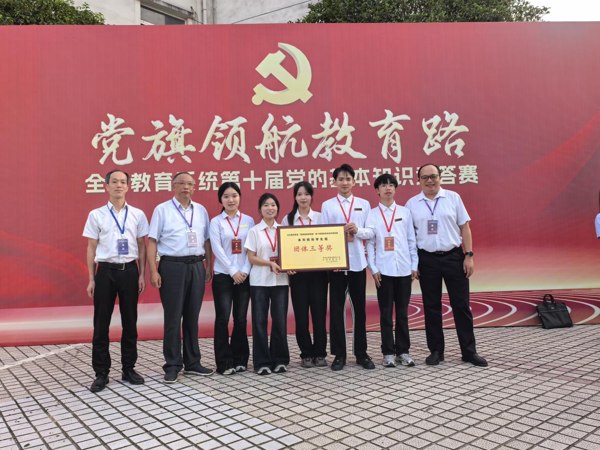 近日,全省教育系统“党旗领航教育路”第十届党的基本知识竞答赛圆满落幕。学校高度重视此次赛事,精心选拔马克思主义学院优秀学生组建参赛团队,经过激烈的初赛角逐与决赛比拼,最终凭借扎实的理论功底、默契的团队协作与稳定的临场发挥,荣获全省本科院校学生组团体三等奖,展现了我校学子过硬的政治素养与良好的精神风貌。
