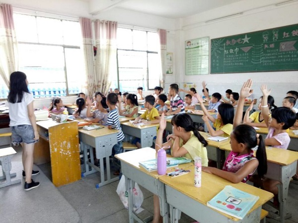 修水县是一个贫困县,山区众多,大部分农村青壮年都外出务工,因此留守儿童众多,由此产生的各种问题也很突出。调研组先后来到渣津镇朴田村、黄沙镇汤桥村、宁州镇东村以及良瑞移民新村等地的小学进行实地考察,对当地的学生以及老师进行了关于英语学习与教学方面的访问,并在教室与学生们一起听课,亲身感受到乡村小学的教学硬件、教师的教学能力以及学生们的课堂表现。最后,课题组成员们在各个学校均发放了调查问卷,为课题调研有更加具体的数据体现,学生们也用稚嫩的笔触写下了对未来的期待。