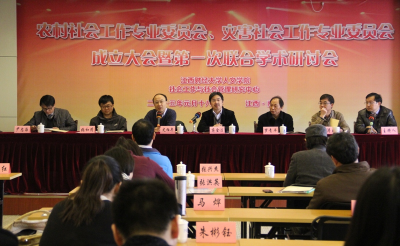 1月18日,由我校人文学院和社会工作与社会管理研究中心承办的农村社会工作专业委员会、灾害社会工作专业委员会成立大会暨第一次联合学术研讨会在校举行。会议通过选举成立了两个专业委员会的理事单位,在此基础上选举了主任委员单位和副主任委员单位。我校分别被选举为农村社会工作、灾害社会工作专业委员会副主任委员单位。著名社会学家、中国社会工作教育协会会长王思斌教授、副会长兼秘书长史柏年教授、中国社科院社会政策研究中心副主任杨团研究员、江西省农业厅农经处处长罗青平、中山大学教授张和清、中国青年政治学院教授陈涛、长沙民政学院史铁尔教授等出席会议并作专题发言。副校长蒋金法出席大会开幕式并致辞。陈家琪教授、尹忠海副院长主持了会议。