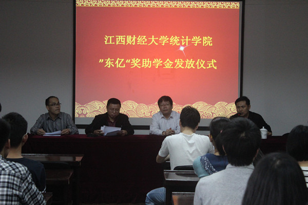 5月10日,由统计学院举办的“东亿”奖助学金发放仪式举行。统计学院院长罗良清、党总支书记毛小兵、副院长罗世华、党总支副书记涂远武参加发放仪式。