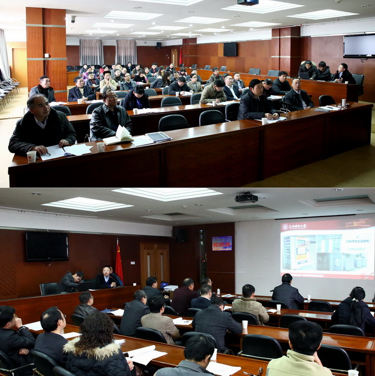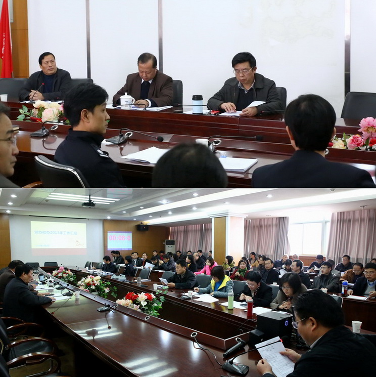 1月6日下午,我校召开2013年度单位工作考评大会。校领导、校务委员、校属各部门主要负责人、各学院院长、党总支书记、教学督导组、研究生督导组、管理服务督查组、校政评议委员、工会代表、民主党派代表、无党派人士代表、离退休党支部负责人共计160余人参加了会议。