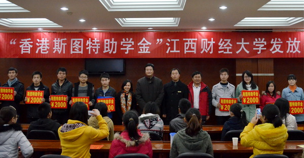 12月14日下午,2012年“香港斯图特助学金”发放仪式在我校蛟桥南区综合楼举行。斯图特基金会江西区项目经理杜兴强校友,副校长肖华茵,学工处副处长、学生资助管理中心主任刘菊华出席了仪式。我校50名受助学生参加了发放仪式。