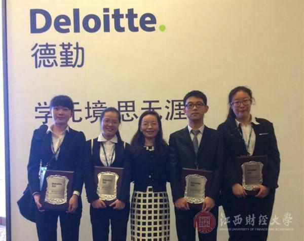 此项挑战赛是德勤在大中华地区举办的年度高校学生税务盛事。本次总决赛在重庆举行,选拔赛历时3个月,吸引了两岸四地66所顶尖大学约300位学生参赛。由会计学院12注5陈娉婷、13注1邹戎、13注3王婷婷、13会5肖雪四位同学组成的江西财经大学代表队一路过关斩将顺利闯进全国总决赛,与来自上海财经大学、中山大学等精英代表队伍共同角逐。在决赛的案例分析环节中,会院选手凭借着敏捷的思维和清晰的思路,不畏强敌,沉着应对。紧接着的现场竞答环节,选手们更是乘胜追击,以扎实的专业功底,良好的团队合作,将江财学子的良好风貌展现的淋漓尽致,最终获得评委的一致好评,成功斩获大赛 “优异奖”。