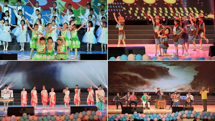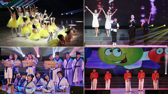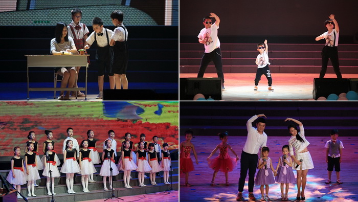 六一庆典在少先队新队员入队仪式中拉开了序幕。小朋友们通过主持、合唱、舞蹈、绘画、器乐演奏、舞台剧、独唱、诗朗诵等灵活多样的形式展现了健康活泼、积极上进的精神面貌:舞蹈《牛仔很忙》给观众们带来了激情洋溢的西部牛仔;励志歌曲《我的未来不是梦》节奏明快,唱出了对梦想的追求和不懈的努力;蔡歆培、杨子平、罗亦韬等三个家庭带来的亲子表演赢得了在场观众们的阵阵掌声;管乐联奏的《我心永恒》《小苹果》《天空之城》,集体舞《嘿加油》,歌伴舞《让爱住我家》等一次次将庆典活动推向高潮。整场活动在大合唱《五彩缤纷的大地》中圆满结束。