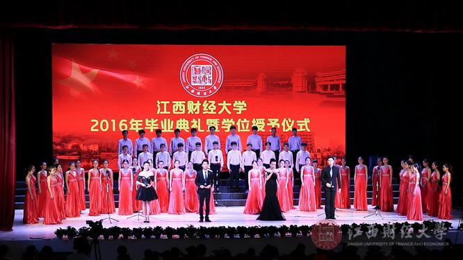 毕业典礼在青春活泼的暖场MV《江财好爱你》中拉开帷幕,共分“匆匆那年”“光辉岁月”“心向远方”三个篇章。其间,穿插毕业生视频《青春不散场》和朗诵《江财颂歌》、合唱《让世界充满爱》等文艺节目,整体氛围庄重而不失温情。