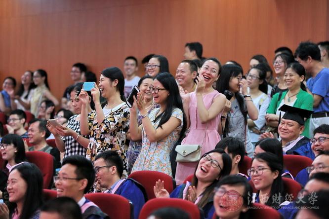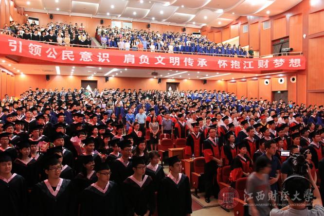他要求,“现在开始,大家就要对自己的角色定位做到心里有数”。“你若明媚,阳光自在,你若芬芳,蝴蝶自来”,希望大家秉承“信敏廉毅”校训,立于道德高地,引领道德风尚,不断提升自我人生境界;希望大家在走出江财之后,能够继续秉承母校教诲,以根植于内心的文化修养与无需提醒的文化自觉,成风化人,润物无声,勇敢地肩负起文化传承与创新的使命,不断向上向善向前行;希望大家以“经世济民,孜孜以求”为己任、以创新创业为不懈追求,成为实现中华民族伟大复兴“中国梦”的江财“梦之队”成员,在全国经济战线、财经领域和文化建设等方面卓越追求,独树一帜。