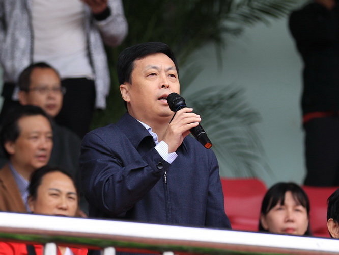 副校长邓辉致开幕词,他代表学校体育运动委员会,对本届运动会的顺利召开表示热烈的祝贺;向本次运动会付出辛勤劳动的教职工和同学表示衷心的感谢;向参加运动会的裁判员、教练员、运动员致以崇高的敬意。他指出,学校多年来始终高度重视体育教育,一流的大学也应该有一流的体育。一年一度的校运会是对全校师生员工运动水平的一次检阅,是对学校群众性体育工作成果的一次检验,也是对广大师生员工竞争意识、团队精神、顽强意志的一次考验,更是全校师生员工精神面貌的一次全面展示。他希望全体运动员弘扬“更高、更快、更强”的奥林匹克精神,本着“友谊第一、比赛第二”的原则,尊重裁判、尊重对手、尊重观众,展现真我风采、追求自我超越,赛出风格、赛出水平;希望全体裁判员忠于职守、公平盘判罚,为各项比赛创造良好的氛围;希望全体工作人员发扬团结协作、无私奉献的良好风尚,努力将本次运动会办成一届节俭高效、团结和谐、拼搏进取、鼓舞人心的高水平有特色的体育盛会。