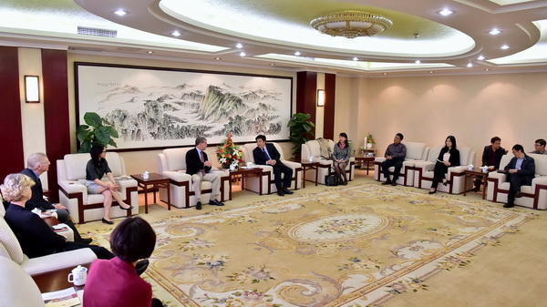 10月13日至14日,美国西华盛顿大学教务长、副校长Brent Carbjal博士、环境学院院长Steve Hollenhorst博士、人文与社会科学学院Janet Xing博士、副教授罗宝珍与国际处处长Dr. Vicki Hamblin博士一行五人来访我校。副校长王小平亲切接见了访问团一行。