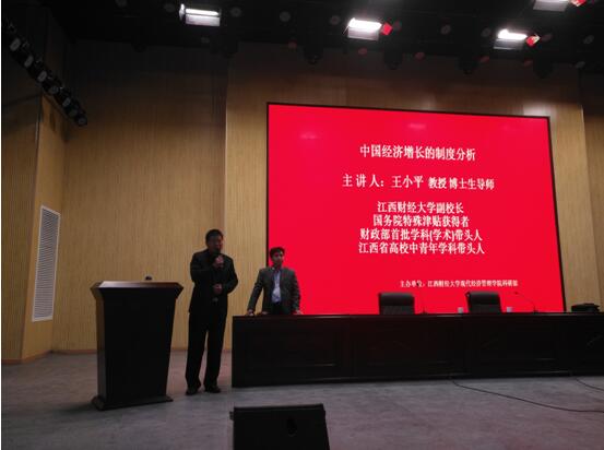 10月22日上午,现代经济管理学院“南湖大讲堂”第一期在共青校区开讲。我校副校长、学院董事会副董事长王小平教授受邀作题为“中国经济发展制度研究”的专题讲座。讲座由学院副院长陈明主持,院党委书记姜红仁、副书记纪春福,学院共青校区600余学生及部分教师听取了讲座。