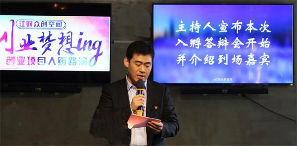 “所谓路演啊,就是创客在公共场所进行演说、演示产品、推介理念,及向他人推广自己的项目、团队、想法的一种方式,旨在争取评审、投资人对创业项目的支持。而且本次路演邀请了江财电视台按电视节目标准全程录播。”