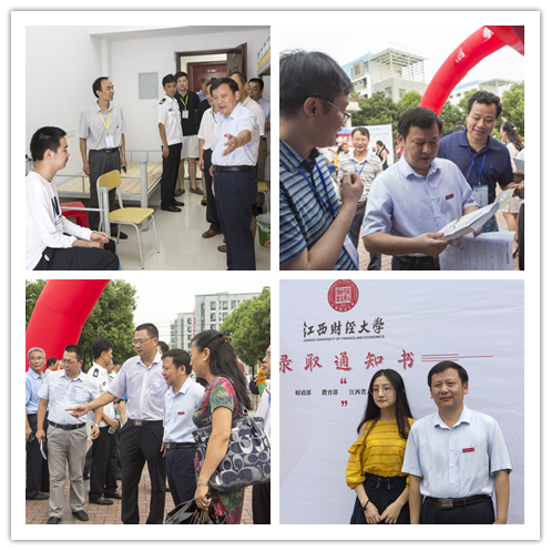巡视结束前,卢福财在校大学生传媒联盟制作的《江西财经大学录取通知书》喷绘前,应邀与法学院新生吴蕴睿同学合影留念,并与吴蕴睿同学的家长进行了亲切交谈,细致了解学生家长对迎新工作的反映。吴蕴睿同学激动地说,她的舅舅之前也是从江西财经大学法学院毕业的,自己入学第一天能够见到校长并与与合影,她感到出乎意外,非常激动。