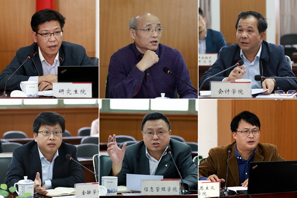 工商管理学院院长胡宇辰、会计学院院长章卫东、金融学院院长汪洋、信息管理学院院长毛小兵、人文学院院长尹忠海分别发言,对我校学科(专业)交叉融合发展的现状、难点、感想、展望等从不同角度进行了交流。(文/孙爱霞 图/孙坚 编辑/匡琳)