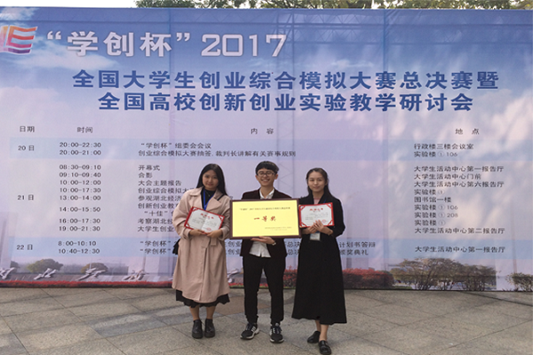 此次比赛采用的是杭州贝腾科技有限公司《创业之星》软件作为竞赛平台,以3人为一个团队,在虚拟的企业经营环境中,对企业进行6个季度的经营管理。我校参赛队员经过紧张激烈的初赛、区域半决赛,从百余选手中脱颖而出进入全国总决赛。经过激烈角逐,最终以盈利表现、市场表现、投资表现、成长表现以及创业计划书等构成的综合评分荣获“学创杯”2017全国大学生创业综合模拟大赛总决赛一等奖,为江财赢得了荣誉。