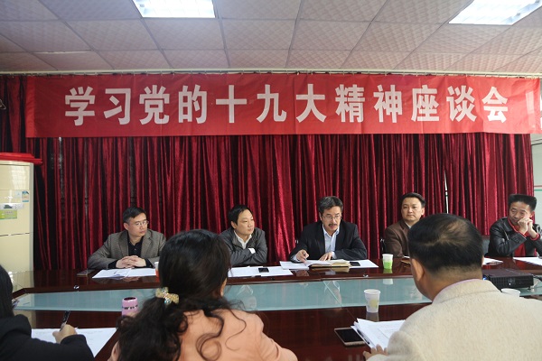 王金海介绍了召开持此座谈会的意义,王部长强调我们学习十九大精神,不但要在学起来上下功夫,更要在做起来上下功夫,下一步重要的工作是让十九大精神进课堂,进学生的头脑,要把学习十九大精神落到实处。