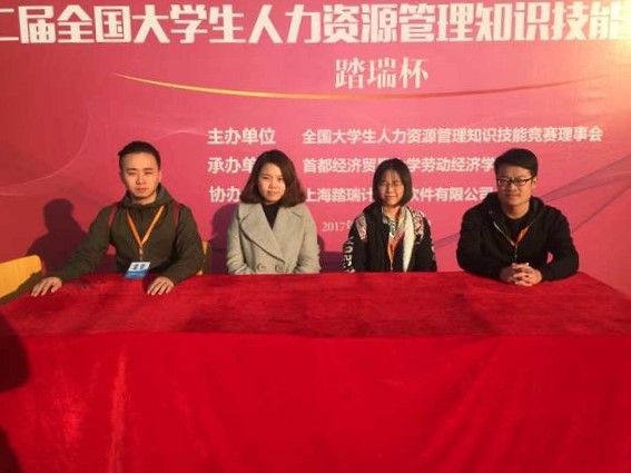 全国大学生人力资源管理知识技能竞赛由中国人力资源开发研究会主办,旨在通过高校学生人力资源管理各方面技能实践运用,展示高等院校管理类相关专业教学成果。自5月份进入决赛名单以来,江财代表队就做好了迎接一切挑战的准备。在带队老师——人力资源系主任李敏老师和朱建斌老师的指导下,杨斯佳、柴思瑒、孟凡雨、杨洁四人精心准备、刻苦训练,以所学人力资源管理知识应用到案例当中,引导团队更深入地走向知行合一、学以致用的道路。