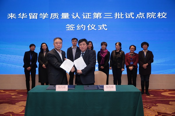 2015年,中国教育国际交流协会受教育部委托,作为第三方评估机构启动了“来华留学质量认证试点工作”。首批通过来华留学质量认证的有北京大学、武汉大学等27所院校,第二批通过认证的有清华大学、华中科大等30余所高校。为提升我校来华留学教育质量,我校国际合作与交流处主动向中国教育国际交流协会申请,并成为第三批31所认证试点签约院校中的一所。协议签署后,我校将根据“高等学校来华留学质量认证工作办法”、“高等学校来华留学质量认证指标体系”和有关程序的要求,接受专家组对我校来华留学教育教育质量的评估认证工作。
