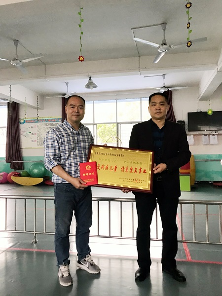 修水县向日葵儿童智力开发中心共80余名学生,大多是8岁以下的自闭症儿童、脑瘫患者和有学习障碍的儿童。农工党江西财经大学委员会向中心捐赠了人民币3000元和一批适合体育器材。中心为捐赠方颁发证书,表达对其“关爱残障儿童,情系康复事业”的敬意。农工党员们与残障儿童一起游戏玩耍,传授运动和锻炼方法,给孩子们带去欢乐与温暖的陪伴。