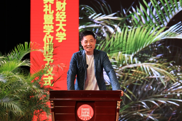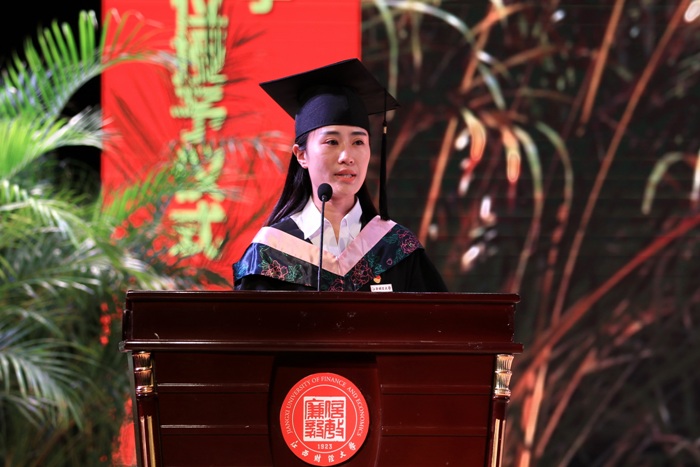 今天,是我们人生中极其特别又重要的日子。数年前,我们总是不经意间用手机搜索江财的网页,猜想着校徽里那几个古朴大字的真实意蕴。现如今,我们心生庄严地穿上学位服,和亲爱的老师、同学互道不舍与珍重。我想,这一美好时刻,不光属于我们自己,更属于我们共同的记忆坐标——江西财经大学。此刻,请让我们把无尽感恩和留恋化为掌声,为她送上我们内心最诚挚的谢意与祝福。谢谢母校!感恩江财!