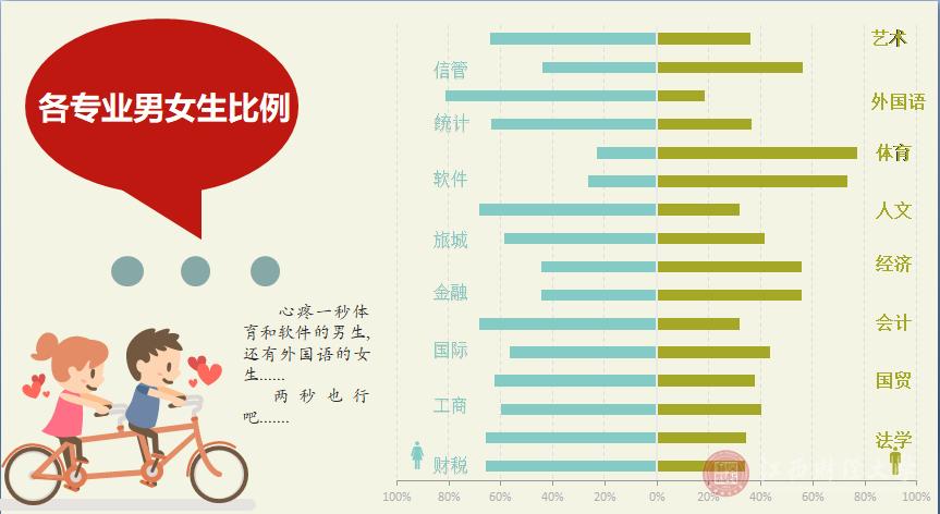 江西财经大学作为财经类学校,男女比例与理工类学校的大相径庭。在2018级新生中,女生占比57.7%,男生占比42.3%,整体比例较为平衡。然而,这并不意味着各个学院的男女比例平衡。实际上,男女比例与不同学院、不同专业存在着密切的关联。例如,体育学院男女比例高达4:1,是所有学院中男女人数差距悬殊最大的;而外国语学院恰恰相反,男生占比只有20%。