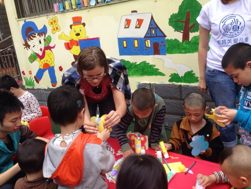 这里的孩子从两岁到九岁不等,大部分是聋哑人。由于不能依靠言语交流,有的孩子甚至更愿意沉浸在自己的世界。这些都给志愿者的工作带来了很大的困难,但是通过不断的尝试和耐心的陪伴,也借助做手工、玩游戏的机会,孩子们快乐的笑声不停地在空中回荡。