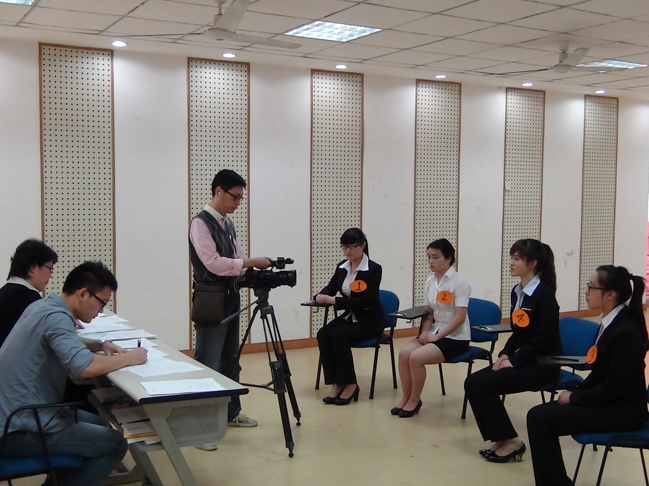 面试过程中,面试官围绕自我介绍、对应聘岗位的认识、选择应聘岗位的原因、如何胜任应聘岗位等几个方面考察选手的专业水平、表达能力、思维逻辑以及应变能力;面对评委老师提出的问题,选手们反应机敏,思路清晰,以从容的态度有条不紊地作答,让人心生敬佩。每场面试结束,面试官们激烈的讨论着选手的表现,对选手进行打分,确定进入决赛的参赛选手,由于选手们的各方面素质优良,致使面试官们多次出现难以抉择的情况。