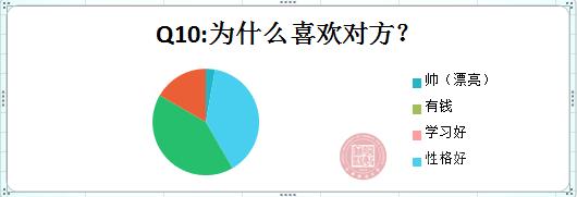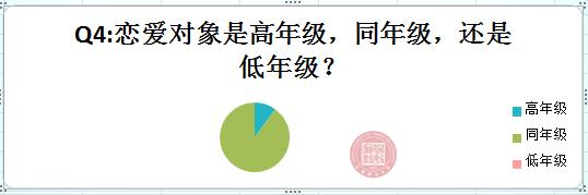 4. 恋爱对象:同年级的占90%,高年级的占10%。其中外校的占50%,同班的占30%,同校的为20%。