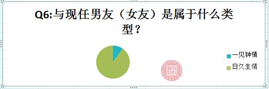 5. 恋爱类型:90%是日久生情,10%位一见钟情。其中60%是以前同学,40%是大学同学。