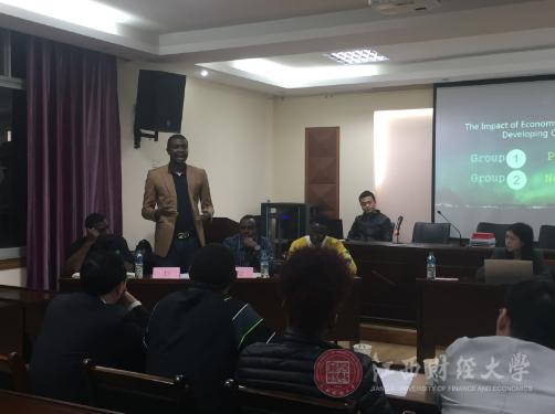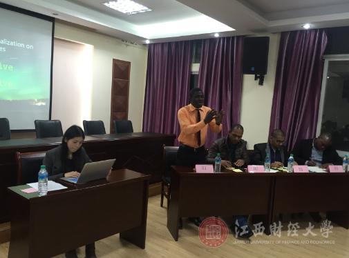 4月1日,由江西财经大学国际经贸学院举办、国贸学院研究生分会承办的国贸学院首届“联梦杯”留学生辩论赛在国贸学院商务谈判室如期举行。比赛特邀国贸学院副院长吴朝阳、硕士生导师刘祎以及两名留学生代表Odala Keith Kholowa和shisem gebresilassie 作为评委,学院全体海外留学生及15级国际商务班研究生作为观众参加此次比赛。