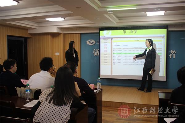 在路演环节中,各团队分别就公司各季度工作进行概述,阐述其存在的不足,优势和未来预期计划。选手机智的答辩和条理清晰的PPT讲解获得评委的一致好评,同时评委耐心指出他们公司虚拟运营中存在的不足,并大方引导其思考如何解决。接近尾声时,吴志斌诙谐幽默的讲话瞬间打破了比赛的紧张气氛,同时也拉进了与学生们的距离,他通过讲述一个6岁加拿大小姑娘的职业选择,谈到个人能力的不可替代性,并且着重点评选手的精神风貌,时间把控,以及交流制作PPT的技巧。