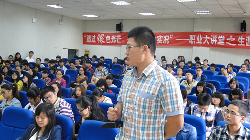 在最后的提问环节中,同学们向校友就银行工作提出了自己心中的疑惑,如进入银行工作的发展前景、银行业目前面临的挑战及如何在工作中处理好同事关系等等,校友们也耐心为现场的同学们进行了一一解答。