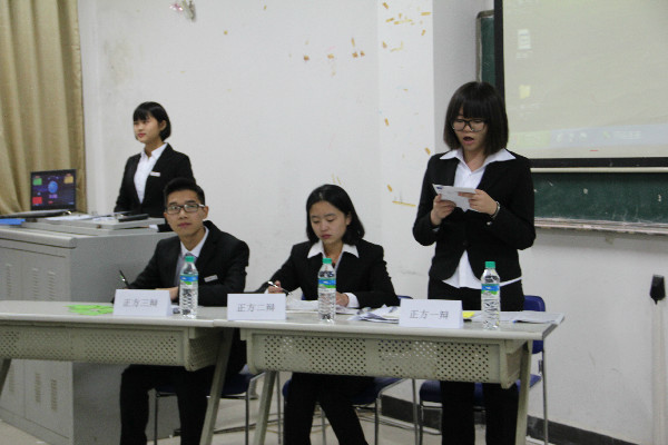 本次“法苑杯”新生辩论赛冠军争夺赛采取奥瑞冈赛制,辩题为“中国大陆地区是否应该建立赌博特区”。在主持人宣读完比赛规则及注意事项后,辩论赛正式开始。经过多轮比赛的洗礼,决赛场上的双方选手都显得十分自信从容。正方“闻责队”一辩首先开始了四分钟的申论,紧密围绕着“中国大陆地区应该建立赌博特区”展开了严谨有序的立论陈词。一辩发言结束后,反方“争鸣队”二辩立即对其展开质询,并凭借对正方一辩话语矛盾的质问和恰到好处的打断暂时领先。在反方一辩申论过后,正方三辩用富有感染力的语言从社会主义与资本主义和中美文化历史的对比多个方面向其提问,引得现场掌声不断。在正方二辩的申论和质询环节结束后,反方二辩围绕自己的观点开始了申论,并从“生理激素促使赌博上瘾”切入问题,让对方选手感到了不小的压力。不过正方一辩以清晰的思路和良好的心理素质沉着应对,巧妙得躲闪回击,化险为夷。又经过两轮的申论和质询环节,比赛开始接近尾声。反方三辩犀利地指出对方观念漏洞,对建立赌博特区的需要性进行了质疑,凭借敏捷的思维和凌厉的语言风格让在场观众赞叹不已。在五分钟的质询过后,比赛进入结辩环节。值得一提的是,在主持人宣布由双方辩友各选一人上台抽签决定结论顺序后,正方三辩秉承着“女士优先”的原则,让反方三辩优先抽签,其展现出的绅士风度让现场观众不约而同地鼓起掌来。