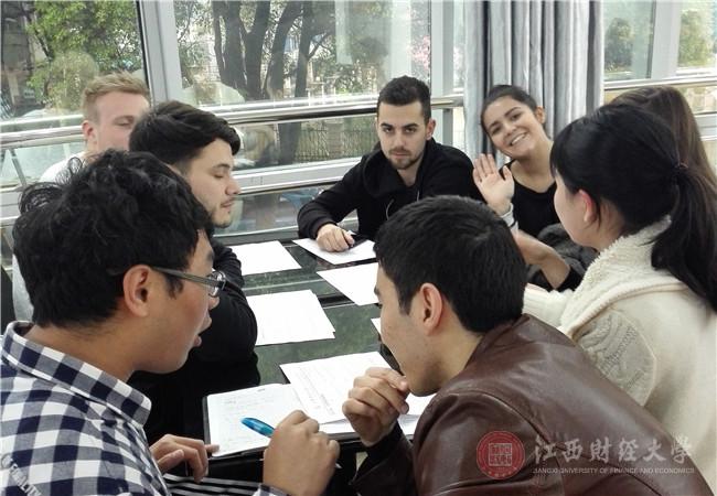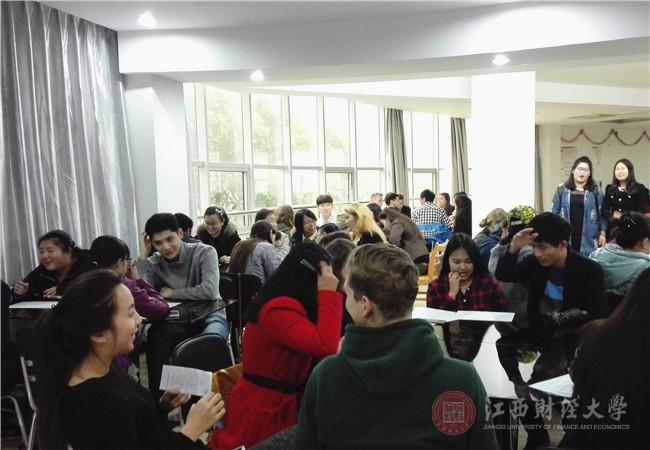 本期“汉语角”的主题为“江财人的一天”,围绕这一主题,留学生志愿者们精心准备了丰富的学习资料,比如如何打招呼、如何点餐、如何问路等常用词句。在人文学院两位老师的指导下,留学生与中国学生组成小组,一起学习教材上的内容,并模拟真实场景进行练习,让留学生直观地感受到汉语言的魅力,在轻松愉悦的环境下掌握到实用的日常汉语。在活动现场,有的留学生在中国学生的帮助下,学习如何为远方的朋友送上中文的生日祝福;有的留学生则反过来教授中国学生外语;还有的中国学生传授给留学生中文歌曲、中文绕口令等。中外学生频频互动,气氛越来越高涨,即便是在活动室外也能听到室内传来的欢笑声、鼓掌声。时间过得真快,两个小时的时间一眨眼就过去了,短暂的相处让中外学生之间建立了深厚的友谊,不少人互留了联系方式,有的甚至酝酿结成对子,以期互相学习,共同进步。
