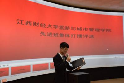 活动伊始,主持人宣布评分细则、打分制度与参赛顺序。随后,由各班代表依次上台以PPT和视频等方式从学习风气、班级制度、寝室文化、班级荣誉等多个方面展示自己班级独特的风采与优势,每人演说时间为5分钟,代表们从容自信,纷纷陈述各自班级在过去一学年里所展现的积极进取,锐意创新的精神风貌。班级展示形式新颖多样,有的以画报插图的形式配以代表的讲解,生动的将班级故事娓娓道来,有的准备了印着班级标语的牌子,举着牌子的他们让在场的观众真切地感受到了班级浓厚的凝聚力,引起一阵由衷的掌声。在所有班集体展示完后,党委副书记张志军对此次班集体打擂进行了简要的总结,赞扬了每个班级所体现出的和谐团结氛围,同时也对班集体提供了一些建议。在对班集体指导后,他公布了此次先进班集体名单,伴随着观众热烈的掌声,旅游与城市管理学院2017-2018学年度先进班集体打擂活动圆满落下了帷幕。